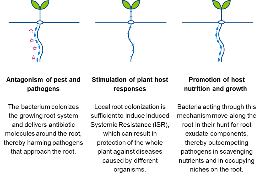 The microbes live in and on the plants, roots and soil and aid them with the benefits of increased root development and uptake of water and nutrients, as well as disease protection and resilience against frost and drought.